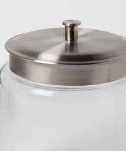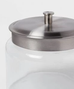 Keep your cooking and baking ingredients and other items contained in a beautiful style with this 105-Ounce Glass Storage Canister with Wood Lid from Threshold™. With the clear glass construction, this food storage canister lets you see when you’re about to run out. The stained wood lid helps keep the contents covered and gives the storage canister a natural, modern aesthetic that you can effortlessly integrate into your kitchen decor.