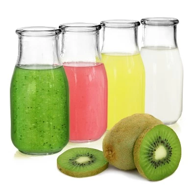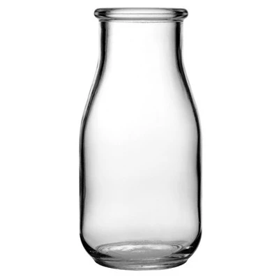 Enjoy and serve some fresh milk or orange juice with this set of four milk bottles from Anchor Hocking. Made in the USA with quality glass these drinkware containers feature a classic milk bottle design. Add a touch of retro decor to your breakfast table with these bottles. You can also use them to bring your morning smoothie to work or school or use them to display a flower as a table centerpiece. Best of all these bottles are dishwasher-safe for quick and easy clean-up.