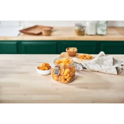 These Ball Storage Latch Jars feature a durable latch system that creates an airtight seal. The jar shape and stackable lid design are space-efficient in your kitchen and pantry, and the super-wide mouth opening offers easy access to contents inside. These jars feature crystal-clear glass lids and bases, giving you a 360-degree view of what’s stored inside. The BPA-free jars are ideal for dry goods, pantry organization, craft storage, decor, and more.