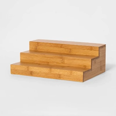 Organize spices in your kitchen with this Bamboo Expanding Spice Rack from Threshold™. This freestanding spice rack in a durable bamboo wood finish brings natural beauty to your space. It features an expandable three-tier design that can extend to create extra storage space when required. The space-saving spice organizer is perfect for storing spice bottles, jar and other kitchen containers. Plus, it can be spot cleaned for easy care.