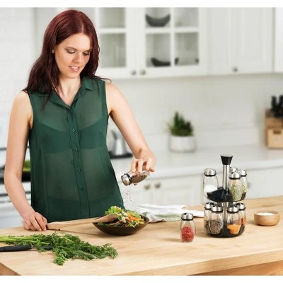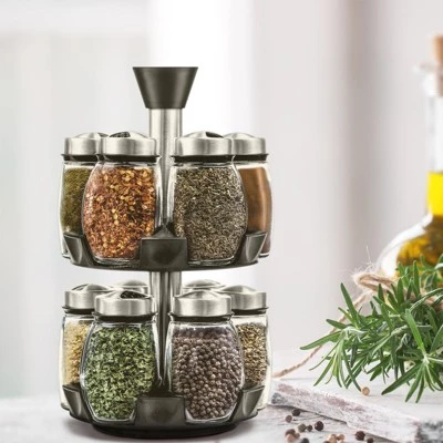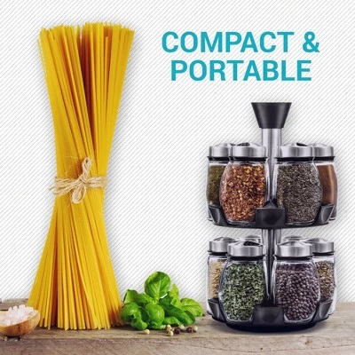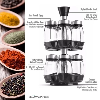 The Belwares Spice Carousal equips you with the essential spices and herbs that you need for your traditional cuisine. With a contemporary design, this spice Carousal is very modern with a sleek design. The spice carousal comes with 12 glass jars. They are light and easy to fill, and clearly visible when you need to refill again. The Best Quality Belwares is well-known for providing the highest quality kitchen products on the market. We manufacture our products using premium materials available. The quality workmanship of the rack stand is handmade by experts makers. What’s more the spice jar rack arrives to your kitchen fully assembled, so you can just take it out of the box, fill the bottles with twelve of your most favorite spices and get cooking with conviction and control.