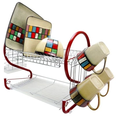 The Better Chef 2-Tier Chrome Plated Dish rack is made of rust resistant stainless steel with an attractive chrome finish. The silicone feet protectors will keep the rack steady so there will be no wiggles and wobbles bringing your plates crashing down. With the plastic draining tray, your counter will be safe from the drips of the drying dishes, so no wasting paper towels on clean up after you’ve put your dishes away. The DR-225R even has a mug stand for a few cups and cutlery holder for all your forks, spoons, knives, and kitchen utensils. Perfect for large families, its 23 plate capacity will make sure you’re able to complete a full load of dishes in just one go, no more waiting for half to dry and finishing the rest later. Just set your dishes on the rack and let them dry in style!