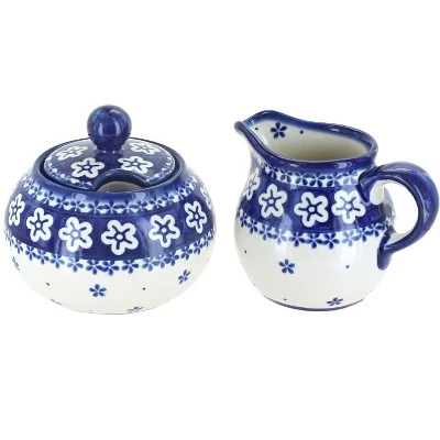 from Vena – New Shape Cream & Sugar Set – Creamer – 1 cup capacity, 3.25″ high, Sugar Bowl – 1 cup capacity, 3.75″ high The Art of Polish Pottery, as we know it today, started as local folk art centuries ago in the German province of Silesia. The first known pieces of โBunzlauerโ stoneware dating back to the 16th century were crafted by hand and decorated with a folk art stamping technique using potatoes. Original designs were inspired by the peacock feather using the colors of cobalt blue, sage green and ferrous red. These designs and colors are still the inspiration for modern day patterns.Today, skilled Polish artists still individually handcraft and hand decorate each piece using small sponges to stamp each pattern and color. After the process of mixing ingredients, molding the pottery, applying the decorations and glaze, the pottery is twice fired. This process makes the pottery extremely durable, it will not crack or chip easily, and it is perfect for use in the microwave, dishwasher, oven and freezer. Along with our pottery, we have sourced a range of absolutely beautiful hand blown glassware from Poland. It is the perfect addition to your Polish Pottery Collection!