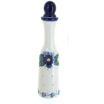 11.5″ tall and 2.75″ wide at base – Perfect for oil or vinegar! The Art of Polish Pottery, as we know it today, started as local folk art centuries ago in the German province of Silesia. The first known pieces of โBunzlauerโ stoneware dating back to the 16th century were crafted by hand and decorated with a folk art stamping technique using potatoes. Original designs were inspired by the peacock feather using the colors of cobalt blue, sage green and ferrous red. These designs and colors are still the inspiration for modern day patterns.Today, skilled Polish artists still individually handcraft and hand decorate each piece using small sponges to stamp each pattern and color. After the process of mixing ingredients, molding the pottery, applying the decorations and glaze, the pottery is twice fired. This process makes the pottery extremely durable, it will not crack or chip easily, and it is perfect for use in the microwave, dishwasher, oven and freezer. Along with our pottery, we have sourced a range of absolutely beautiful hand blown glassware from Poland. It is the perfect addition to your Polish Pottery Collection!