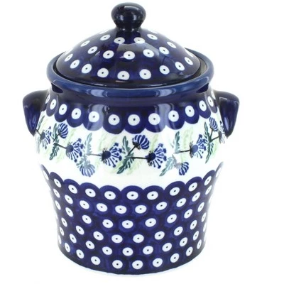 8.0″ high, 6.3 cup capacity The Art of Polish Pottery, as we know it today, started as local folk art centuries ago in the German province of Silesia. The first known pieces of โBunzlauerโ stoneware dating back to the 16th century were crafted by hand and decorated with a folk art stamping technique using potatoes. Original designs were inspired by the peacock feather using the colors of cobalt blue, sage green and ferrous red. These designs and colors are still the inspiration for modern day patterns.Today, skilled Polish artists still individually handcraft and hand decorate each piece using small sponges to stamp each pattern and color. After the process of mixing ingredients, molding the pottery, applying the decorations and glaze, the pottery is twice fired. This process makes the pottery extremely durable, it will not crack or chip easily, and it is perfect for use in the microwave, dishwasher, oven and freezer. Along with our pottery, we have sourced a range of absolutely beautiful hand blown glassware from Poland. It is the perfect addition to your Polish Pottery Collection!