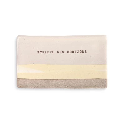 - Explore new horizons with pieces designed for use in the home featuring a modern approach to regional décor with warm colors and rustic textures that are sure to inspire; This rectangular spoon rest features natural artwork with sentiments at the top that read, “Explore New Horizons”