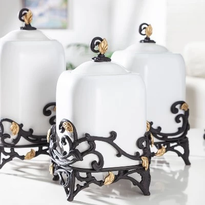 Our new Gold Leaf 14.25″H Canister is perfect for your cookies, coffee, flour, or your pet’s favorite treats! The white stoneware combines effortlessly with the espresso brown vines with gold leaf touches to create an updated yet classic look.