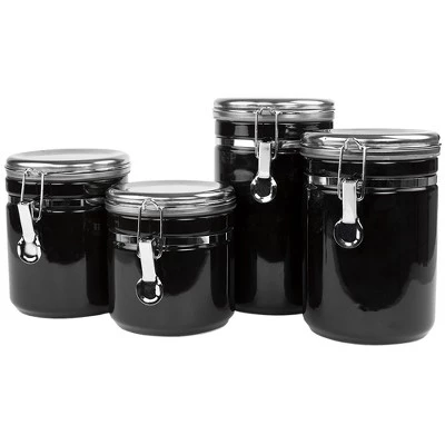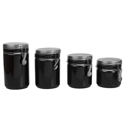 Store flour, trail mix, and more with this Home Basics Canister Set. Made of heavy duty ceramic with stainless steel tops, it features sturdy metal clamps that provide airtight seal to ensure food remains fresh and flavorful. The 4 piece set comes in a wide range of sizes for added versatility.