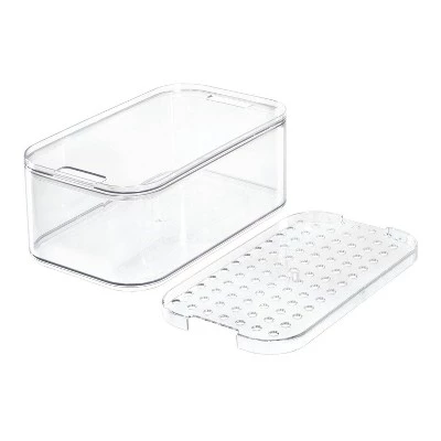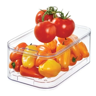 Keep your food protected and organized with the iDesign Produce Holder! This unique container perfectly holds a variety of fruits and veggies and features integrated handles for easy transportation. The organizer is made of durable, BPA-free plastic for the highest-quality construction. Easily rinse your produce in the basket with the slotted-bottom design – water drains out quickly and keeps your food fresh and clean in your fridge. When it comes to clean-up, the holder is easy to clean – just remove the inner basket and hand wash with mild detergent and water.