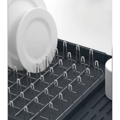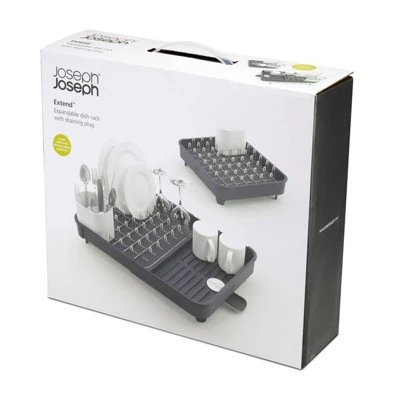 Extend allows you to quickly and easily expand your draining space. When required it can be extended to almost twice its size to accommodate the washing up after either single-or family-sized meals. An integrated spout helps to drain away any excess water, but this can be rotated away and closed trapping water inside for draining later. This means that Extend can also be used to create additional draining space anywhere. With plated steel prongs and non-scratch tips that make it suitable for all types of glassware and crockery, this versatile drainer can be extended to create additional draining space that is ideal for cups and bowls. A moveable cutlery drainer allows for flexible use and non-slip feet to ensure that wherever it is used, the unit will be secure and stable. The steel rack can be removed for easy cleaning.