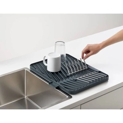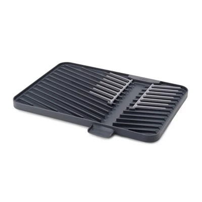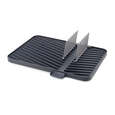 This clever draining board includes a handy pop-up plate rack allowing it to drain up to 6 dinner plates as well as a variety of cups, glasses and bowls. After use, the rack can be folded neatly away for compact storage. The thoughtful design also features a ribbed surface to prevent water being trapped in the mouths of containers, a sloping base that channels water away and an integrated spout for draining directly into the sink. Non-slip feet on the base keep the unit in place during use.