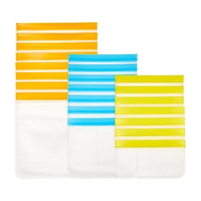 - What’s Included: Includes 21 reusable lunch bags for food in orange, teal, and green colors; 3 assorted sizes; 7 of each size