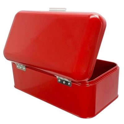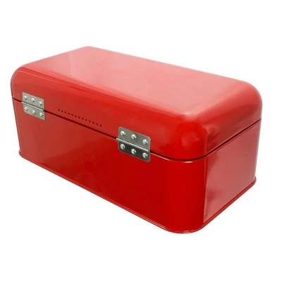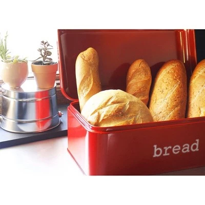Package IncludesStainless Steel Bread Box Storage Container for Kitchen Counter Loaves, Red x 1Item DescriptionStainless Steel Bread Box Storage Container for Kitchen Counter Loaves, RedBread Box for Kitchen Counter – Stainless Steel Bread Bin Storage Container For Loaves, Pastries, and More – Retro/Vintage Inspired Design, Red, 16.75 x 9 x 6.5 inchesKEEP YOUR BREAD FRESH FOR LONGER: Extends the shelf life of your breads and pastries while the lid shuts firmly preventing flies and environmental germs from reaching.ADDITIONAL FEATURES: Designed with small holes that allows air circulation to further keep bread fresh.ORGANIZED KITCHEN COUNTER: Getting tired of seeing bread and buns out on your kitchen counter? Constructed with durable stainless steel, this bread box provides ample storage space and making it essential for any kitchen or home.EASY TO CLEAN: Simply hand wash or use warm water to clean and use dry cloth to wipe.LARGE CAPACITY: Bread box measures 16.75 x 9 x 6.5 inches, easily fits 2 loaves of bread and still with plenty of extra space for bagels and small pastries.It is a bread bin that doesn’t take up extra space in your kitchen. Bread box comes with swing lid that lifts easily. Stores various breads and is ideal for your loafs, bread rolls, bagels, and muffins. Constructed with durable and smooth steel, this convenient breadbox is the perfect for any kitchen or home. Bread box is designed with small holes in the back that allows air to circulate while still keeping bread fresh. Sleek modern design gives this breadbox a vintage feel. Measures approximately 16.75 x 9 x6.5 inches.Product names are trademark of listed manufacturer or other owners, and are not trademarks of eForCity Corp. The manufacturer does not necessarily endorse use of these products.