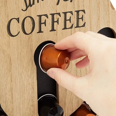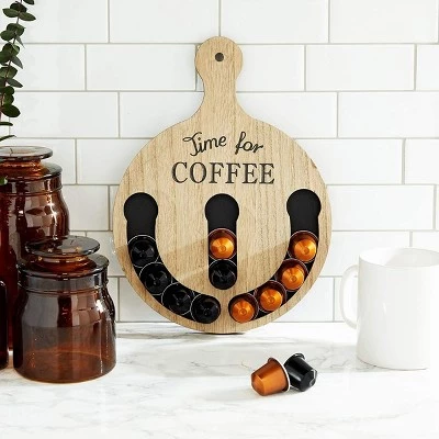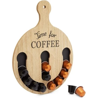 - Coffee Pod Holder: This wall mounted wooden coffee pod display reads Time For Coffee; compatible with Nespresso Original coffee pods