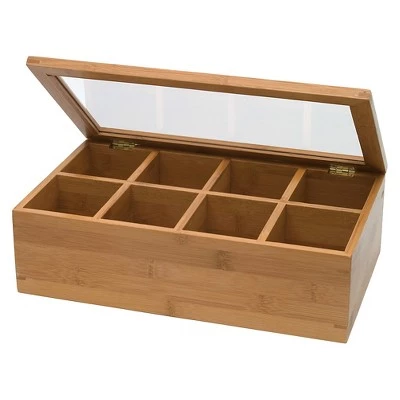 This Bamboo and Acrylic Tea Box features 8 compartments, where you can keep different varieties of tea bags. It allows you to arrange them systematically for easy tea assortment and view them through the see-through acrylic feature. Made of gorgeous bamboo, this Tea Box is functional and beautiful due to its rich, shimmering colors. Crafted from bamboo, it features an understated design with a neutral natural finish. Its attractive construction will add a nice, warm touch and organization to any kitchen.