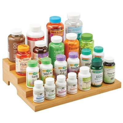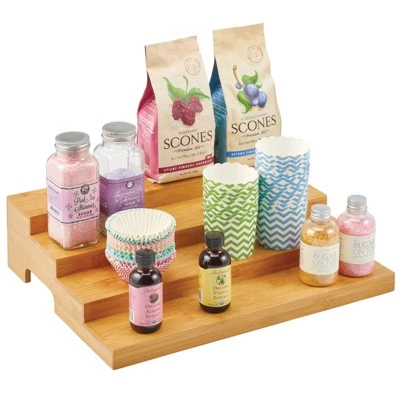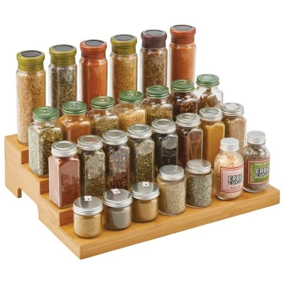 This mDesign Bamboo 4-Tier Spice Rack makes the most of the storage space in your kitchen. The four-level design makes it easy to see what’s stored on each shelf and quickly grab what you need. The rack keeps herbs, spices, baking supplies, daily vitamins or supplements and more organized and in one compact and convenient place.