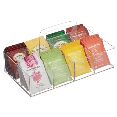 The mDesign Tea Organizer is a great kitchen helper that can bring order to a cabinet, pantry or countertop. This storage bin is perfect for stashing individually wrapped bags or sachets of tea, single serve coffee packets, tea filtering bags, packaged artificial sweeteners, sugar or seasoning packets and even squeeze packs of ketchup, mustard, mayonnaise or relish, so you find what you need in a snap. Convenient and lightweight, this bin can be used all over the home and not just in the kitchen. It works great in the home or work office to keep small supplies like sticky notes or paper clips handy and organized, in the craft room to keep small art supplies neat and tidy or in the bathroom to corral cosmetics or first-aid supplies. It’s easy to create the storage solution that works best for you in any room of your home!