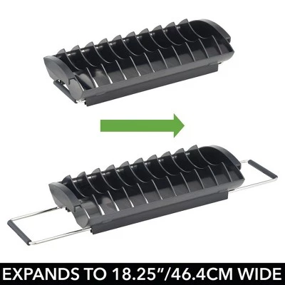 Keep kitchen dishes and bowls clean and dry with the Compact Over the Kitchen Sink Dish Drainer Rack from mDesign. The dish drying rack makes it easy to air-dry dishes right over the kitchen sink. The rack has multiple slots for drying plates and large slots for quick drying.