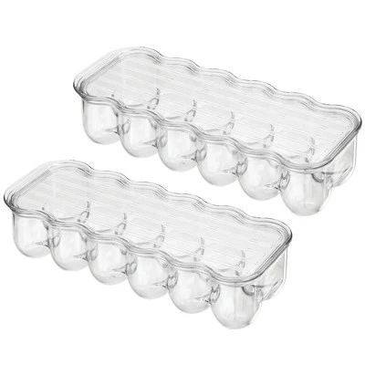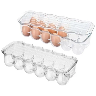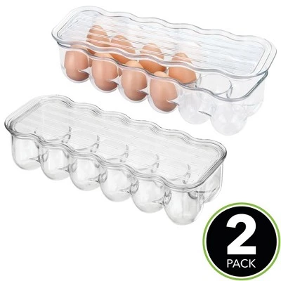 Keep eggs separated and protected inside your refrigerator without sacrificing precious storage space with the Stackable Plastic Egg Storage Bin from mDesign. A durable plastic construction protects your eggs and the removable lid makes these holders stackable for space-saving vertical storage. Use with other mDesign clear fridge and freezer storage bins to organize your entire refrigerator!