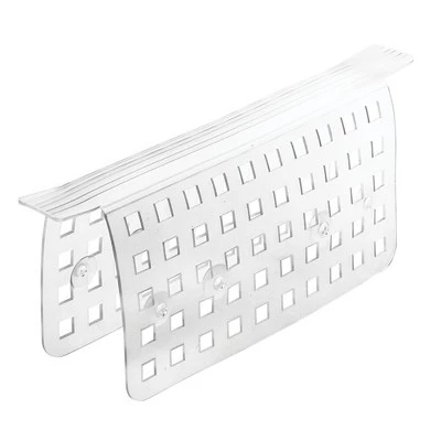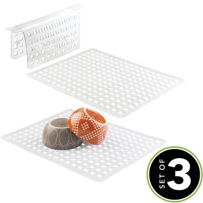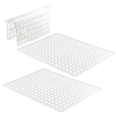 Keep kitchen sinks looking brand new with the Kitchen Sink Protector Mat Set from mDesign. The sink mat and saddle helps protect sinks from scratches and marring, while providing a cushion for dishes. Cut-outs in the sink mat’s design let water flow through quickly so sinks don’t get waterlogged. Four suction cups keep the saddle in place while washing and rinsing dishes.