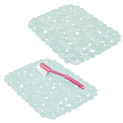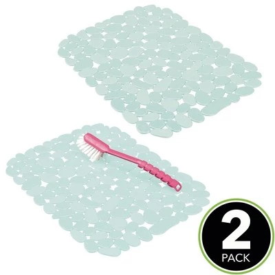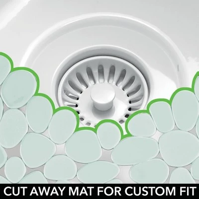 Keep kitchen sinks looking brand new and scratch-free with the quick draining Kitchen Sink Dish Drying Mat/Grid from mDesign. The mat keeps dishes elevated off sink surfaces to avoid scratches and damage. The unique cut-out design lets water flow through allowing your dishware to air dry quickly and it keeps the water from backing up in your sink. The pattern allows you to easily cut apart and customize exactly to your sink.