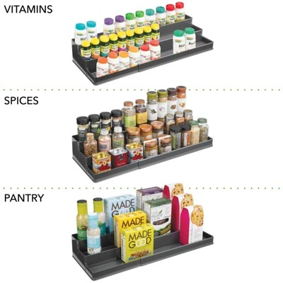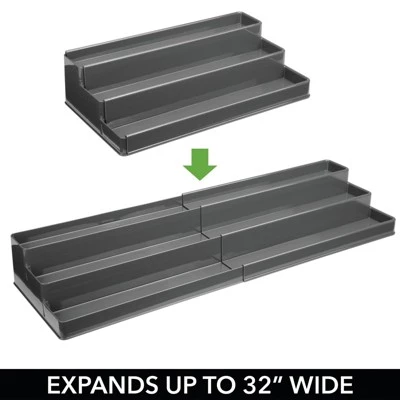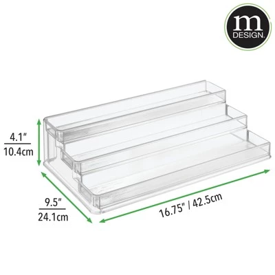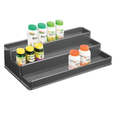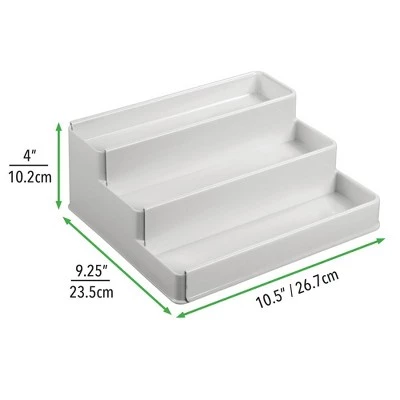 The mDesign Tiered Spice Storage Shelf Tray makes the most of the storage space in your bathroom drawer with its tiered design. The three level design makes it easy to see what’s stored on each shelf and quickly grab what you need. Each shelf keeps pill bottles, first aid supplies and more in one compact and convenient place. Customize your storage by expanding the shelf to fit larger kitchen drawers for easy organization.
