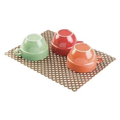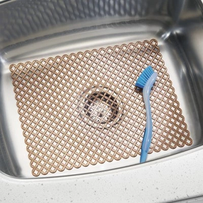 - Cut-outs in the sink mat’s design let water flow through quickly
