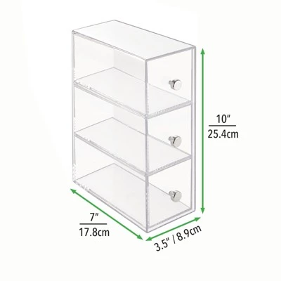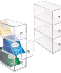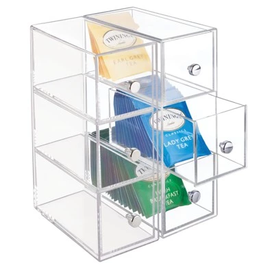 This kitchen storage organizer from mDesign is a convenient and hassle-free way to easily access your tea bags and sugar packets while keeping them neat and in their place. This organizer features three drawers to allow you to organize and easily view your items. Perfect for use in the kitchen cabinet, on a countertop, in the pantry or at the coffee bar. Use vertically or horizontally.