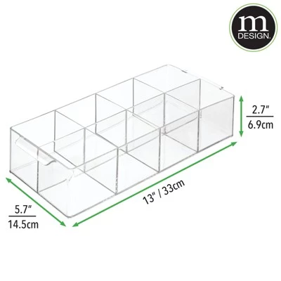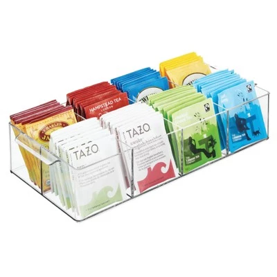 The mDesign Tea Organizer is a great kitchen helper that can bring order to a cabinet, pantry or countertop. This storage bin is perfect for stashing individually wrapped bags or sachets of tea, single serve coffee packets, tea filtering bags, packaged artificial sweeteners, sugar or seasoning packets and even squeeze packs of ketchup, mustard, mayonnaise or relish, so you find what you need in a snap. Convenient and lightweight, this bin can be used all over the home and not just in the kitchen. It works great in the home or work office to keep small supplies like sticky notes or paper clips handy and organized, in the craft room to keep small art supplies neat and tidy or in the bathroom to corral cosmetics or first-aid supplies. It’s easy to create the storage solution that works best for you in any room of your home!