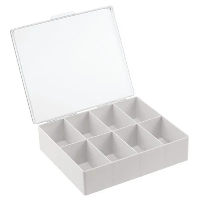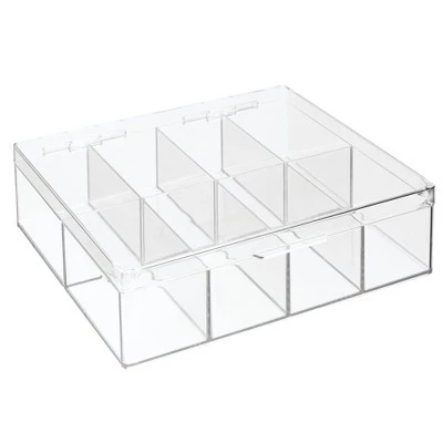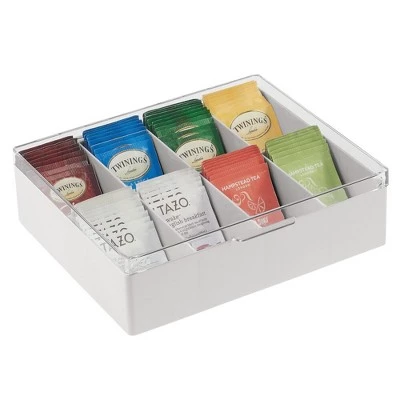 The mDesign Tea Box with Lid is a great kitchen helper that can bring order to a cabinet, pantry or countertop. This storage bin is perfect for stashing individually wrapped bags or sachets of tea, single serve coffee packets, tea filtering bags, packaged artificial sweeteners, sugar or seasoning packets and even squeeze packs of ketchup, mustard, mayonnaise or relish, so you find what you need in a snap. Featuring a built-in, hinged lid cover, this bin can be used all over the home and not just in the kitchen. It works great in the home or work office to keep small supplies like sticky notes or paper clips handy and organized, in the craft room to keep art supplies neat and tidy or in the bathroom to corral cosmetics or first-aid supplies. It’s easy to create the storage solution that works best for you in any room of your home!