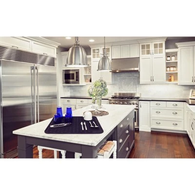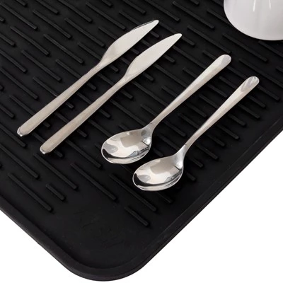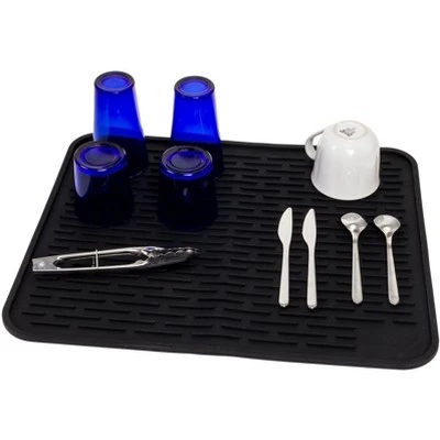 Upgrade your kitchen routine with this 22 x 18 inch Silicone Dish Drying Mat by LISH. Made from 100% food grade silicone and BPA and PVC free, this drying mat is safe for setting cups, plates and utensils, and is extremely versatile. As a dish drying rack, its higher side walls help prevent water from spilling on your countertops, and its wide space ridges provide a quick drying solution. Its heat resistant material allows it to be a trivet or cooling rack, but its possibilities are endless — pet bowl mat, fridge liner, etc. No fuss cleaning, as its top rack dishwasher safe too! No matter what you use it for, it’s the perfect addition to any home.