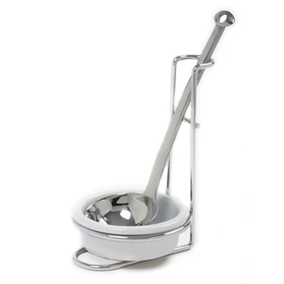Keep your stove top clean with this Norpro 2 piece spoon rest. The stand is made of sturdy stainless steel while the dish is made of glazed porcelain. Simply place the bowl of your spoon in the dish and rest the handle in the stand – your spoon stands on its end meaning no more messes! Even better both the stand and dish are dishwasher safe.