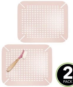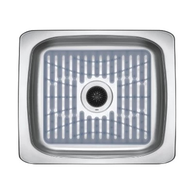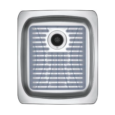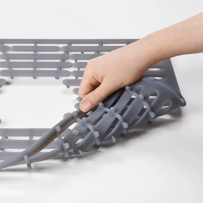 Protect your sink and dishware from scratches, chips, dents and dings with the OXO SoftWorks Silicone Sink Mat. Soft silicone cushions your sink, while built-in feet elevate the Mat for water flow during washing and aeration in between uses. Easily customizable for all styles of sinks, the Mat comes equipped with an innovative pattern for cutting a hole around your drain – wherever it’s located in your sink. Heat-safe construction means you can place pots and pans on the Mat right from the stove. Dishwasher safe, PVC, BPA and phthalate free.