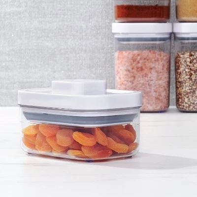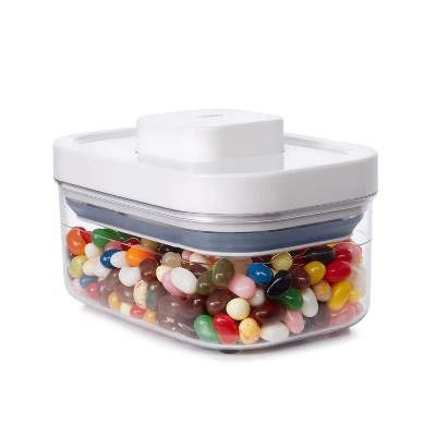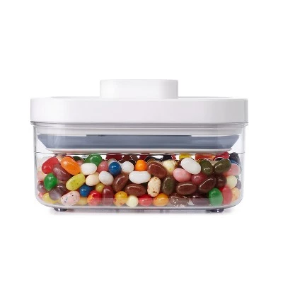 Keep tea bags, sugar cubes and candy fresh and out of the way with the OXO SoftWorks Rectangle POP Container. The innovative lid creates an airtight seal with the push of a button. Press the button again and feel it “pop” up to double as a lid handle. A durable, BPA-free body shows exactly what’s inside the 0.5-qt Container. Rounded corners make for mess-free pouring and the lid easily comes apart for quick cleaning. Designed for modular stacking, POP Containers make the most out of any storage space.