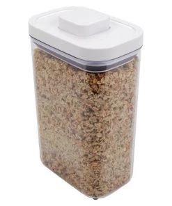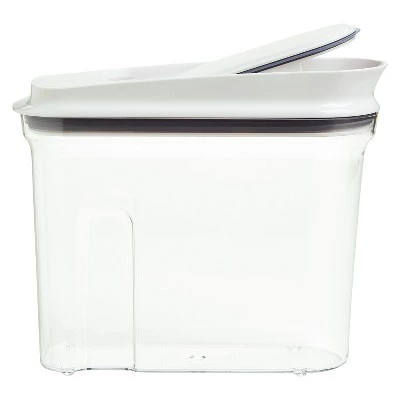 The POP Cereal Dispensers feature pop-open lids for one-handed opening and closing. The smooth-pour spout is designed to prevent messy spills. Contoured for a comfortable hold, even when full. Shaped for efficient storage on countertops or in cabinets.