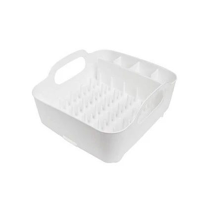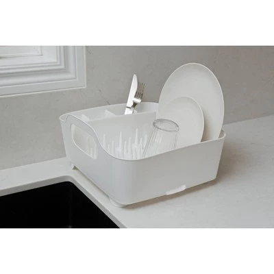 - ALL-IN-ONE SOLUTION: Tub durable BPA-free molded dish rack has it all: easy-to-clean, holds various dish sizes, built-in utensil holder, self-draining spout, easy grip handles for maximum portability even when fully-loaded