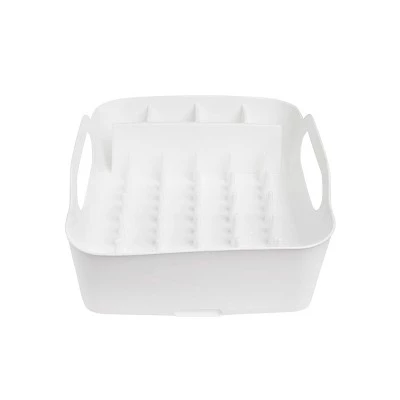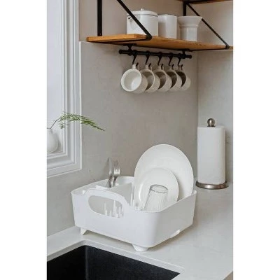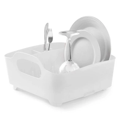 Finding the right dish rack makes doing the dishes much less annoying, especially when you are living in a small place with limited counter space. Make your kitchen more streamlined, and doing dishes a lot less annoying, with our clever and portable drying rack solution. Introducing TUB Dish Rack by Umbra You are going to adore TUB dish rack with its versatility and straight-forwardness. With easy grip handles, self-draining spout and built-in utensil holder, it holds various dish sizes and can sit in, or out, of the sink. All-in-One Dish Rack Solution. The TUB dish drying rack by Umbra features a convenient all-in-one design for today’s streamlined kitchen. Available in a wide range of colors to match your existing décor or add a splash of color to your kitchen, TUB is constructed of durable, easy-to-clean, BPA-free molded material. TUB’s self-draining design works both in the sink and on the counter. The angled base collects and diverts water run-off back into the sink, eliminating the need for a bulky, unsightly drip-tray. Interior pegs allow dishes to be stacked in any direction accommodating glassware, plates and pots with ease. The built-in utensil caddy is generously-sized for holding cooking tools and flatware. Designed with sturdy, generous handles for maximum portability, TUB is easily transferred while fully-loaded from sink to counter and back again, and can also double as a roomy dish-and-utensil caddy for parties and outdoor entertaining. Measures 15-inches by 14-inches by 7-1/2-inches. Order TUB Dish Rack today and make drying your dishes simpler. About Umbra: A global product design company providing original, modern, casual, and functional design for the home.
