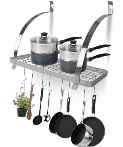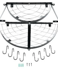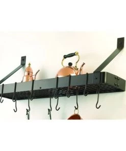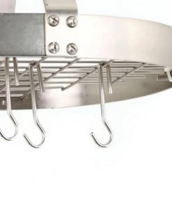 Old Dutch International Matte Black Light Gauge Oval Hanging Pot Rack with 12 Hooks and Chain