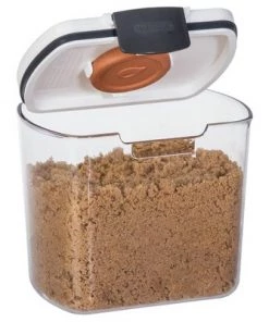 The Prepworks ProKeeper Brown Sugar Container combines high quality construction with a silicone seal for air-tight storage. This container easily holds a 2-lb bag of brown sugar and includes a terra cotta disk. Just soak the disk in water, then snap it under the air-tight lid or place it directly in your brown sugar to keep it from drying out.