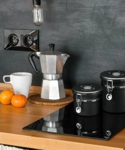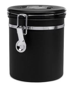 ChefWave Stainless Steel Coffee Canister with Co2 Valve Date Tracker Black 8.8oz