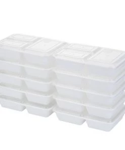 GoodCook Meal Prep 3 Compartment Rectangle White Containers + Lids – 10ct