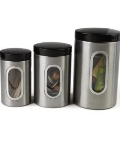 Mind Reader 3 Piece Canister Set with Window, Silver with Black