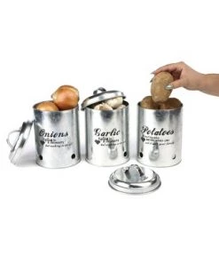 Mind Reader 3 Piece Garlic, Onion, Potatoes Metal Canister Set, Silver