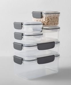 Whether you have just a few leftovers from a weeknight dinner or lots of leftovers from a weekend dinner party, you’ll have plenty of space to keep them fresh with the Rectangular Plastic Snap-Lid Food Storage Container Set from Made By Designβ’. These plastic food containers come with airtight lids that help food stay fresher, and are clear so you can see what’s inside at a glance without having to remove the lid to check it out. The rectangular food containers fit well in any refrigerator and easily stack for convenient storage. With four different sizes in the set, you’ll be ready for any amount of leftovers.