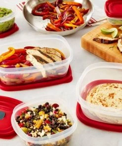 Easily store food, plus minimize kitchen clutter, by using Rubbermaid Food Storage Containers with Easy Find Lids. These meal prep containers are easy to organize and help save space in your cabinets, plus, the 3-, 5-, and 7-cup sizes feature a built-in lid vent for splatter-resistant microwaving, The lids snap to each other and to the bottom of the containers and are bright red, so they’re always easy to find. Constructed from durable, BPA-free plastic, these food containers are built to withstand a wide range of temperatures and are dishwasher and freezer safe; the vented containers are fully microwave safe when the vent is opened. And thanks to their clear bases, it’s easy to see what’s inside.