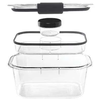 Easily store and transport your food without worry of leaks using the Rubbermaid Brilliance Food Storage Container. Designed to be 100 percent leak-proof, this versatile container allows you to reliably transport soups, sauces, stews, and other foods that are prone to leaking. It features a stackable design so you can store meats, veggies, fruits, and more without cluttering the fridge. Crafted from BPA-free Tritan plastic, this container offers a clear view of the contents. Built-in vents under the latches help prevent splatter while microwaving. And thanks to its stain- and odor-resistant material, this meal prep container retains its premium look even after heavy use. Rubbermaid Brilliance Food Storage Containers are dishwasher, microwave, and freezer safe.