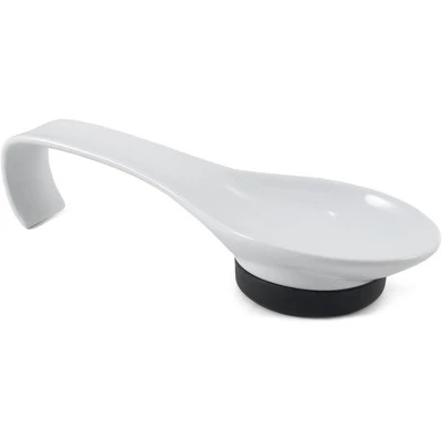 Keep your stove top spotless with this Sagaform Herb spoon rest. Its sleek modern design and white porcelain construction make this spoon rest beautiful enough to leave out during dinner parties and functional enough to use everyday. Capable of holding a standard sized serving spoon this traditionally shaped rest has a modern black silicone base to keep it from sliding. Ideal for any home cook that loves keeping the home neat and tidy this Sagaform spoon rest makes a wonderful gift.