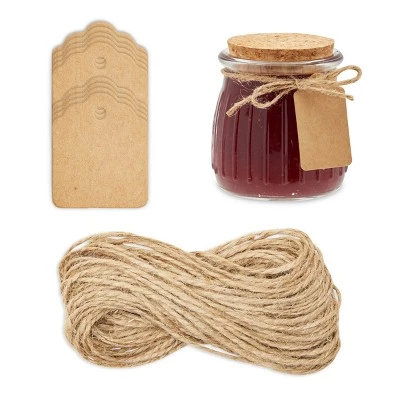 - Dimensions: Jars are 2.8 diameter x 3.25 inches high including the lid; hang tags 1.2 x 1.98 inches; 30 feet of jute
