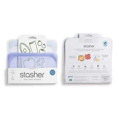 This pack of one Sandwich Stasher bag and one Snack Stasher bag is the ideal 2-pack for a sandwich and snack, travel necessities and purse organization, and even laptop cords and portable phone chargers. Made of pure platinum food-grade silicone, Stasher bags contain no harmful chemicals and are both freezer and microwave safe. A reusable storage bag and everyday essential for the kitchen and life on the go.