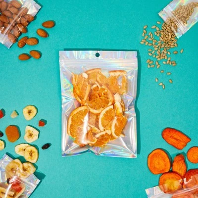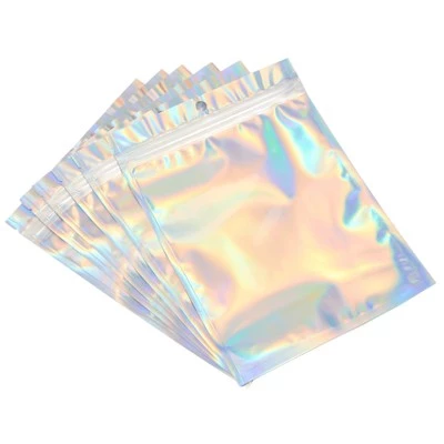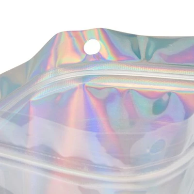 - Resealable Snack Bags: These holographic packaging bags feature a open and close zipper for convenient opening and a clear window to easily view contents inside